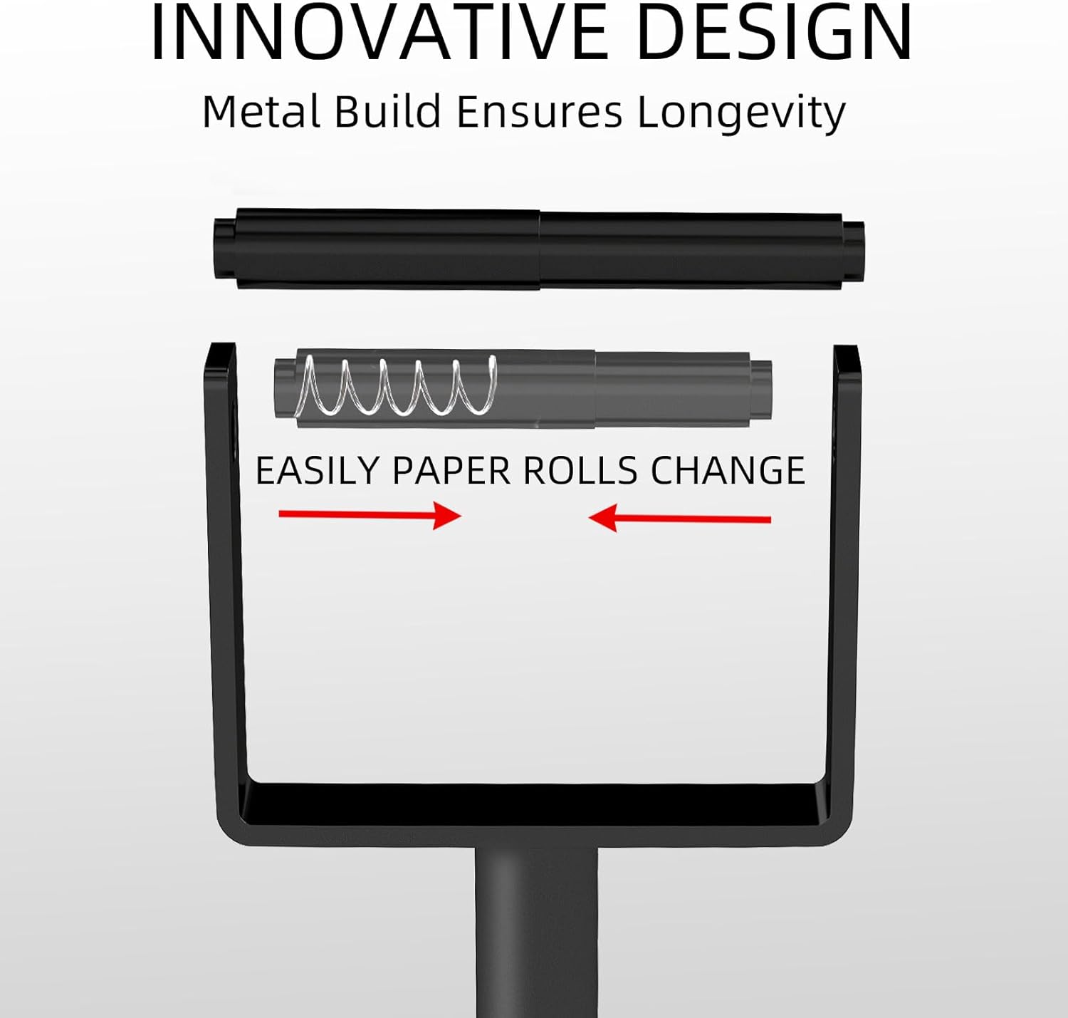 Changing the roll is easy and hassle-free! Simply press one arm inward towards other to remove the empty core, and then gently release the arms to secure the new roll in place.It's a one-second, tool-free process that can be done with a single hand.